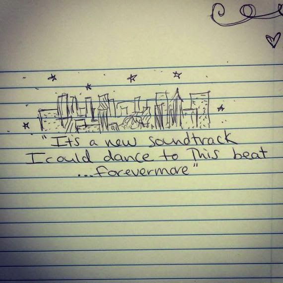 Without much detail, the song features the following sentence: "It's a new soundtrack, I could dance to this beat forevermore."